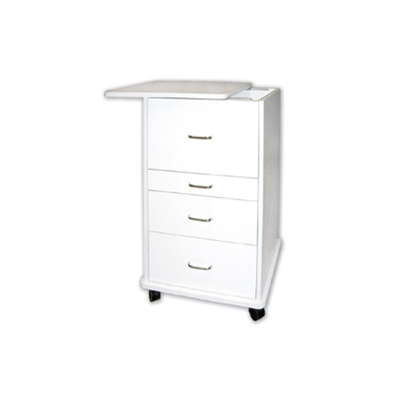 External surfaces of high-pressure laminate with complimentary white interior surface for easy cleaning. Smooth flowing ball bearing glides. Durable casters.
